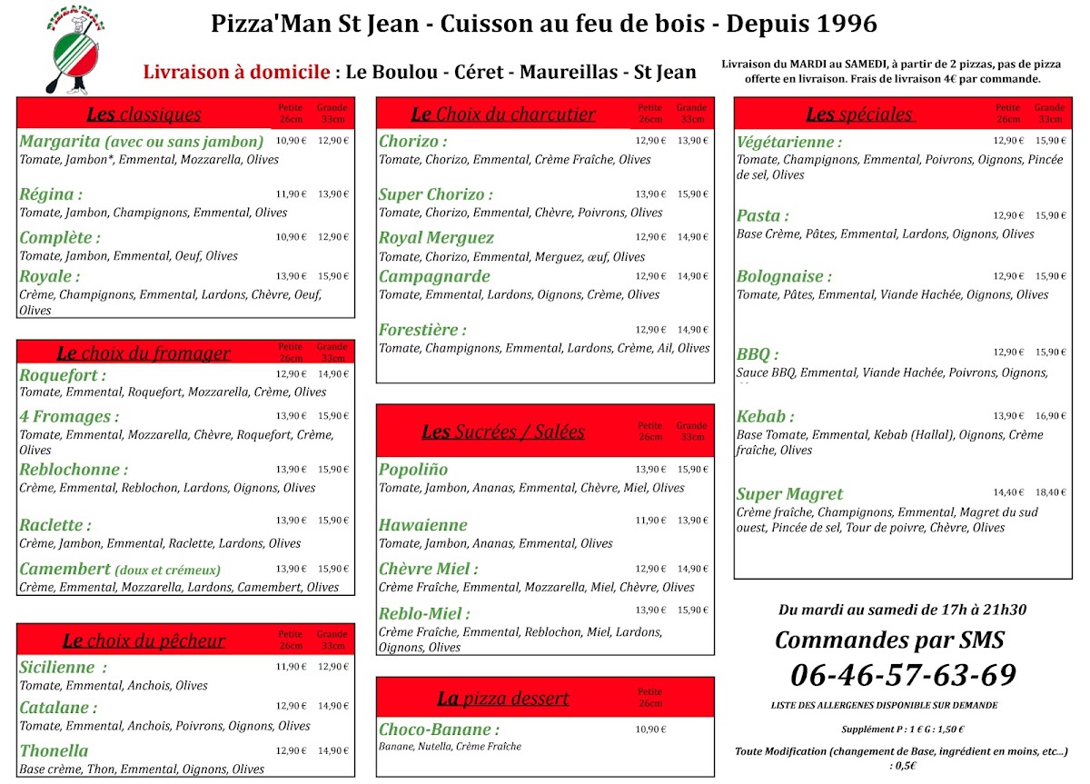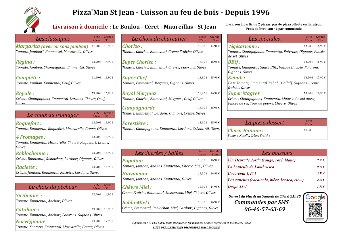 The menu at Pizza'man Saint-Jean-Pla-De-Corts offers a delightful selection of dishes that cater to a variety of tastes, with a clear focus on high-quality ingredients and traditional flavors. Among the standout options is the Tomme de Savoie, a rich and creamy cheese pizza that highlights the distinctive flavors of the Savoie region. Another fan favorite is the Popolino, which combines a perfect balance of savory ingredients for a satisfying and well-rounded taste experience. For those who enjoy a sweet-savory twist, the Reblochon Miel pizza is a must-try. The delicate combination of Reblochon cheese and honey offers a unique blend of flavors that is both indulgent and refreshing.